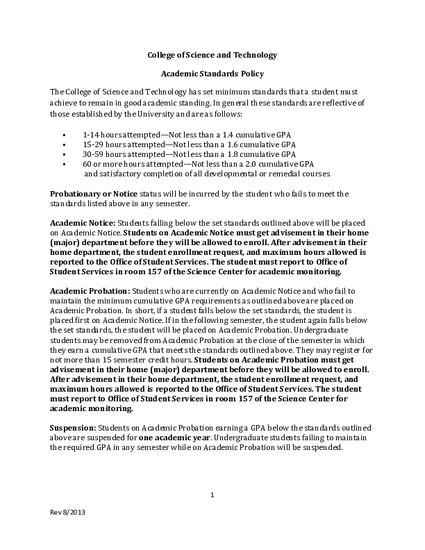 COSET Academic Standards Policy