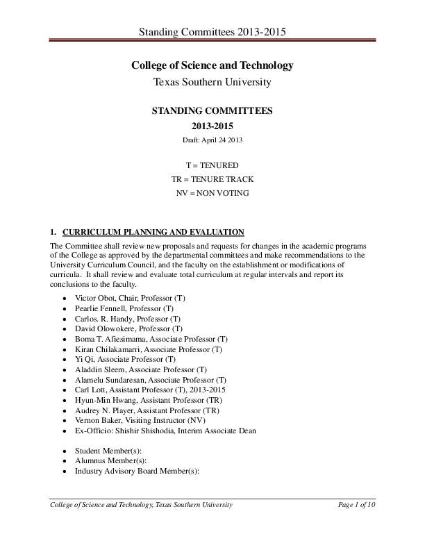 COSET Standing Committes 2013-2015